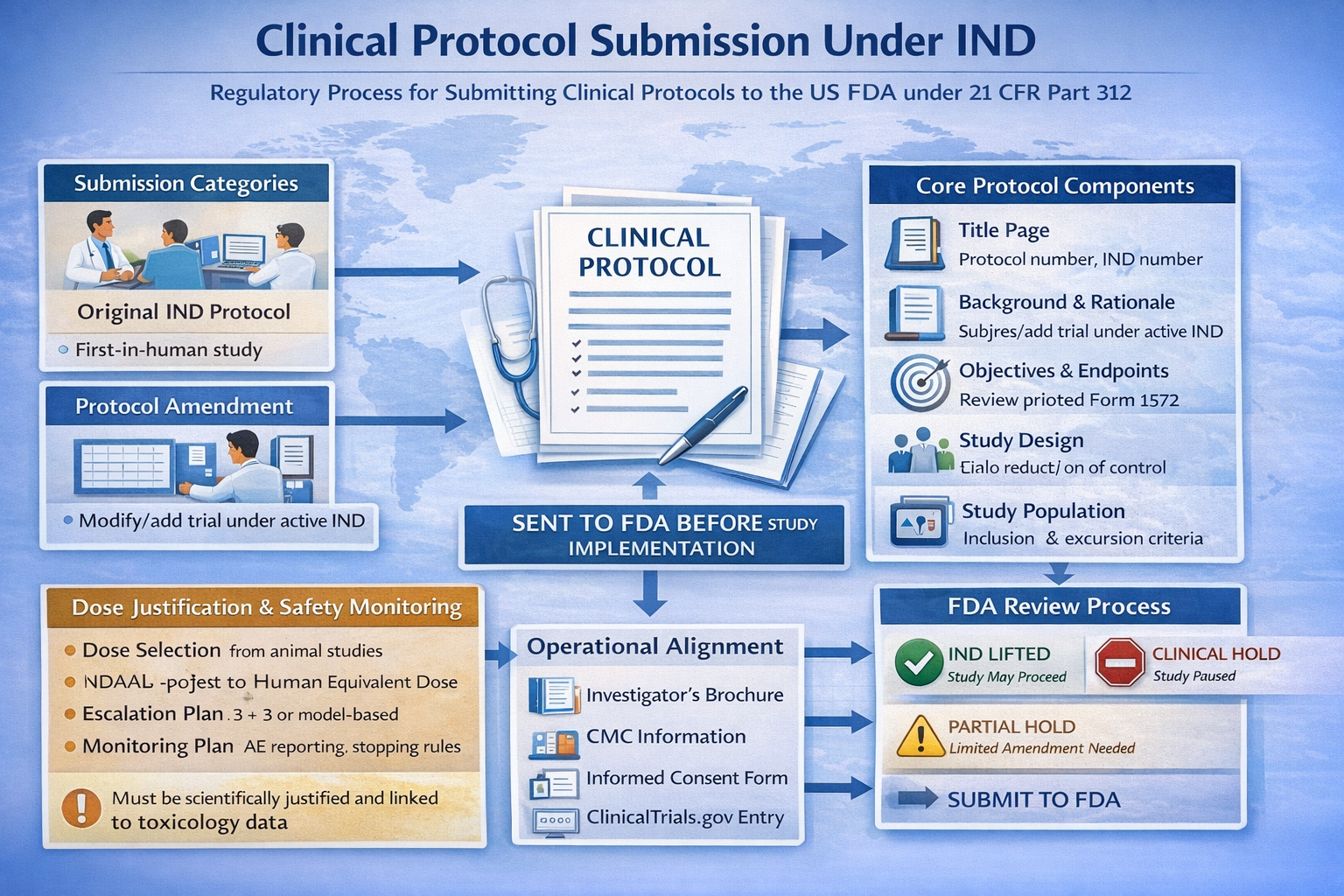 Clinical protocol submission under an IND is a highly regulated, scientifically rigorous process that directly impacts patient safety and development timelines. It requires alignment of nonclinical evidence, manufacturing quality, clinical methodology, and ethical oversight. Mastery of protocol submission strategy and lifecycle management is a foundational skill for professionals pursuing careers in global Drug Regulatory Affairs.