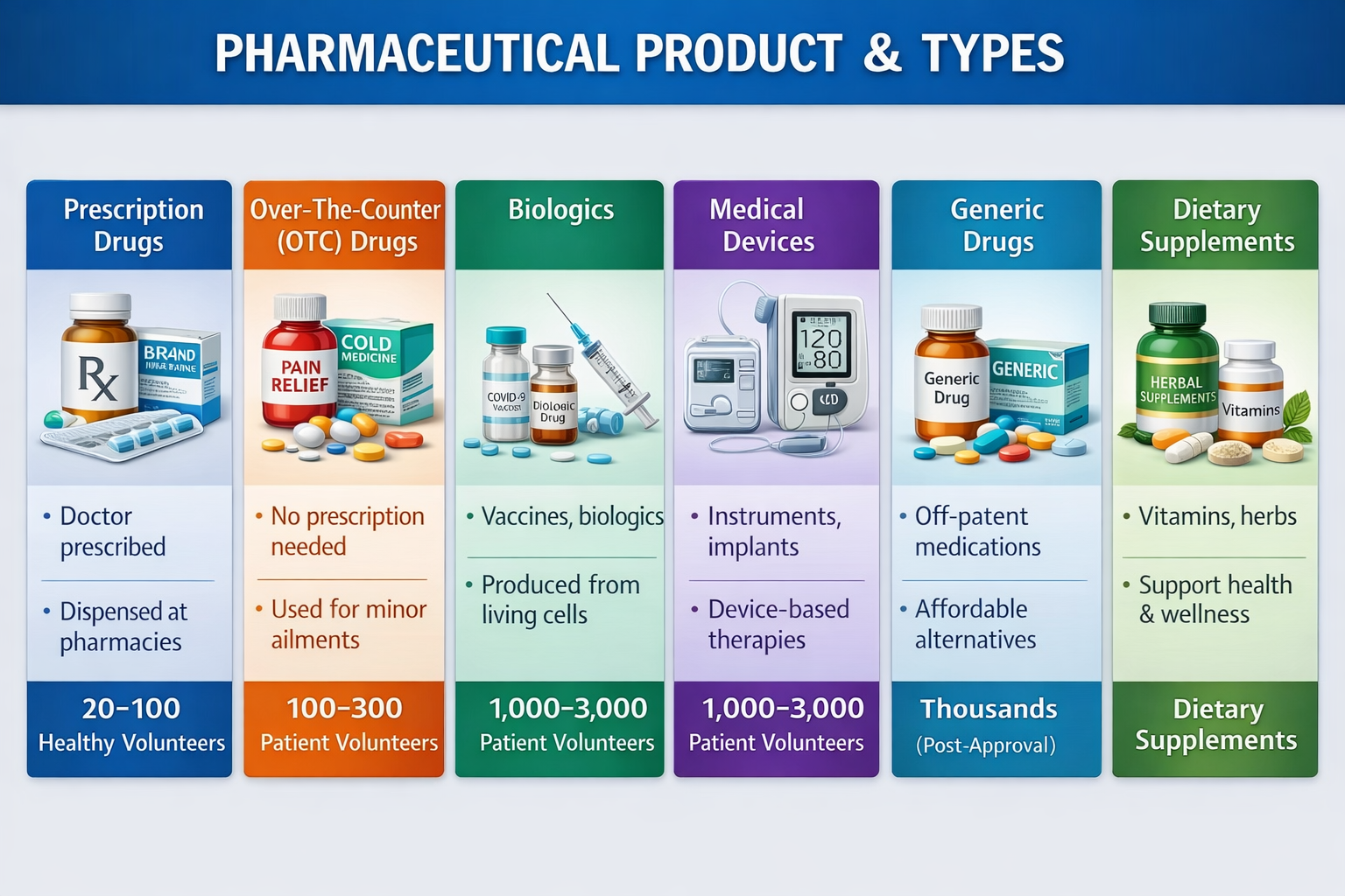 Pharmaceutical products are categorized according to their formulation, method of administration, and biological complexity. They range from conventional dosage forms such as tablets, capsules, and injectables to advanced therapies like biologics and biosimilars. Each category has its own development process, manufacturing requirements, stability considerations, and regulatory pathways. Understanding these product types is essential for professionals involved in pharmaceutical development, regulatory affairs, clinical research, manufacturing, and quality assurance.